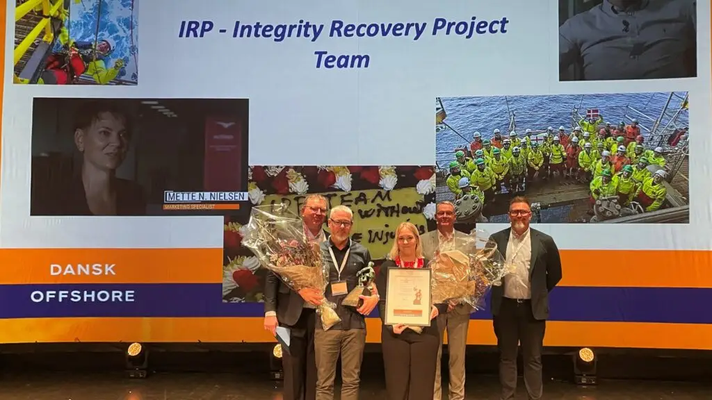 Det blev Altrads Integrity Recovery Project Team (IRP), der blev vinder af Dansk Offshores Safety Award 2024. Teamet modtog prisen og blev hyldet af deres kolleger i offshorebranchen på Dansk Offshore Safety Conference i Esbjerg Musikhus onsdag d. 6. november 2024.